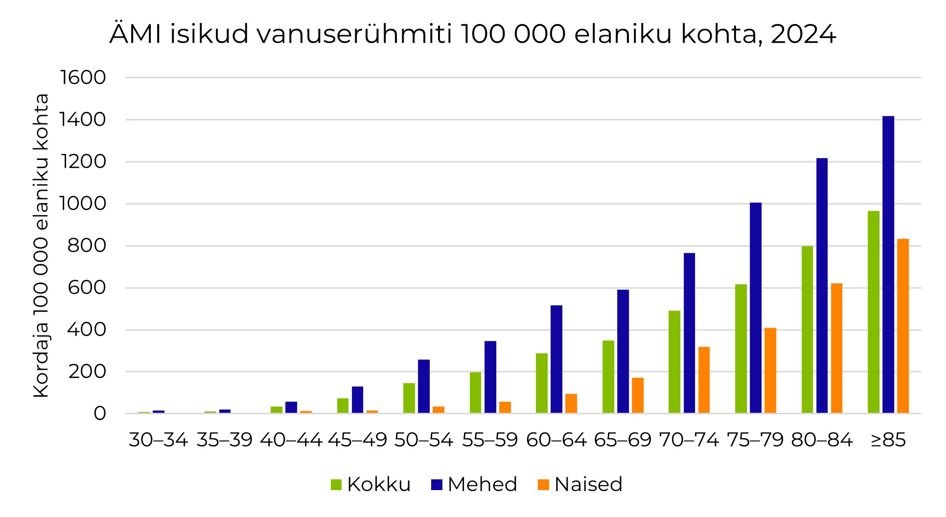 2024. aastal registreeriti müokardiinfarktiregistri andmetel 2391 ägedat südamelihase infarkti (ÄMI), mis on eelneva aastaga võrreldes 96 juhtu vähem.